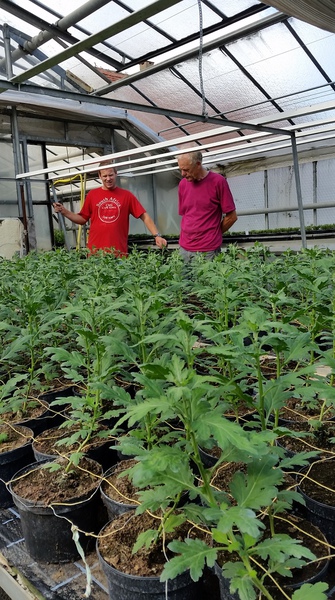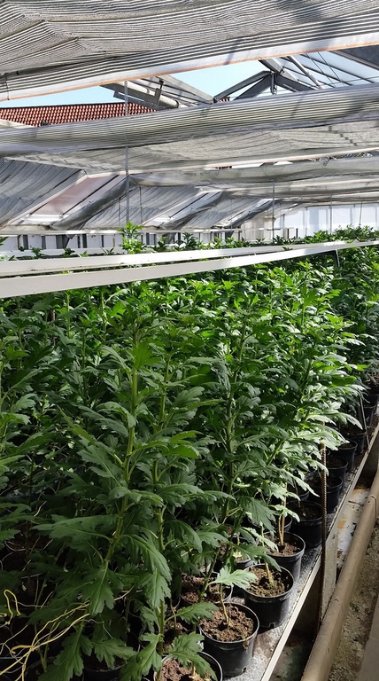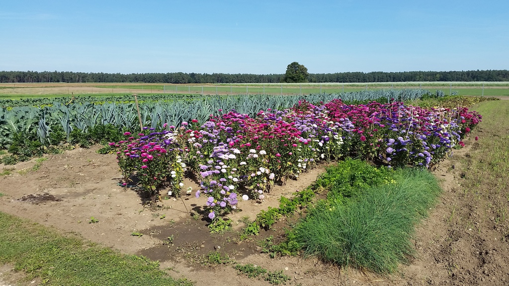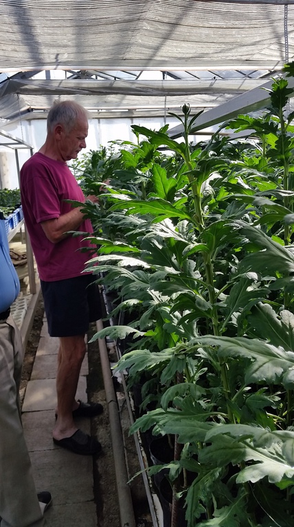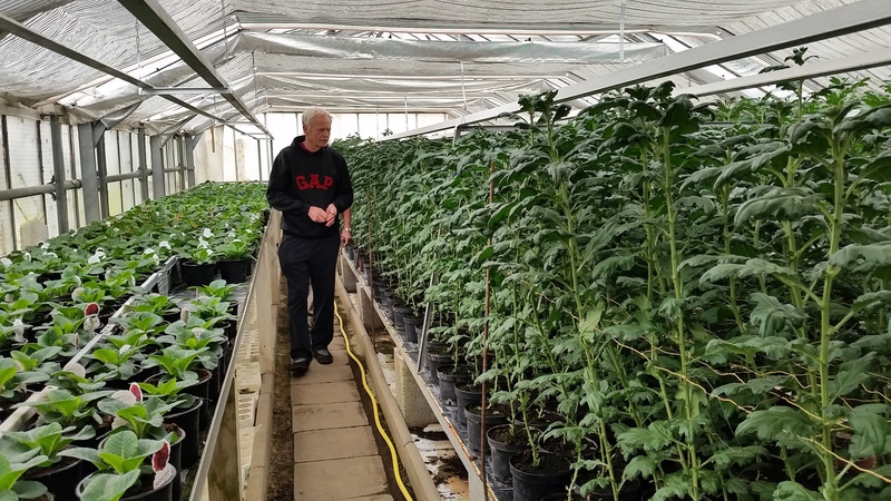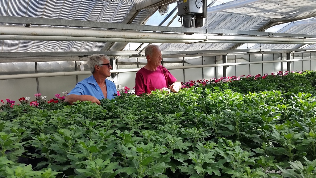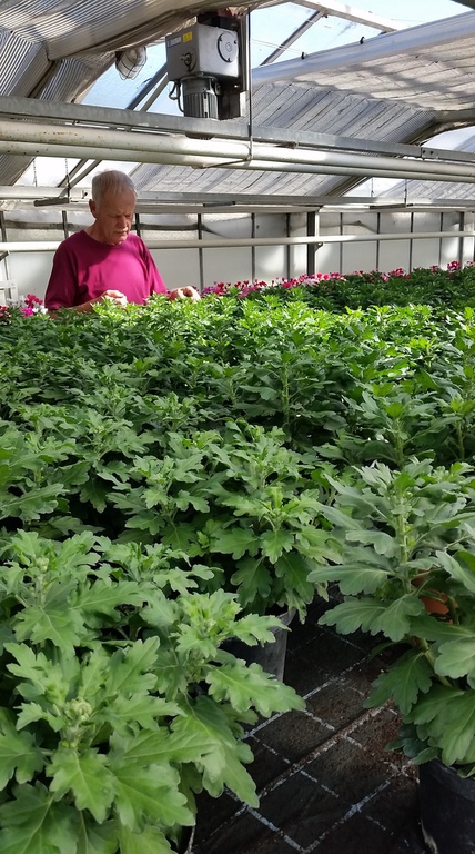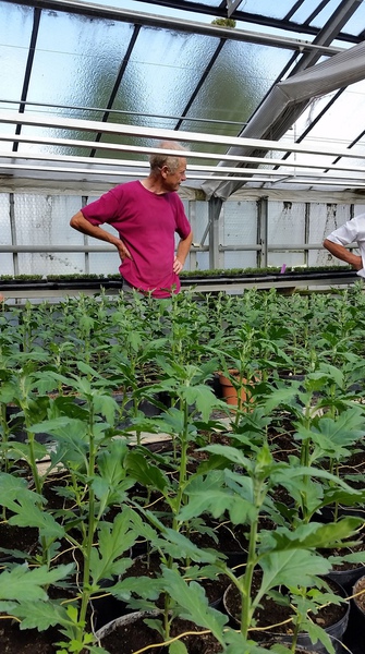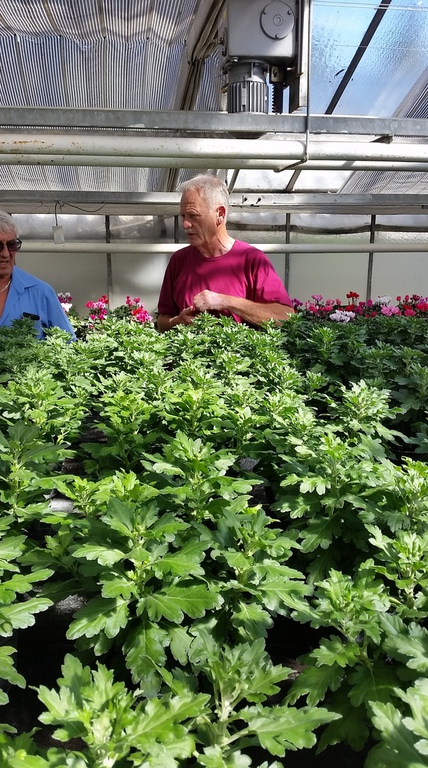 Das Gemüse steht auch gut da, das verkaufen wir dann auf dem Wochenmarkt. Die Chrysanthemen werden fachmänisch von Herrn Eber kontrolliert und die Knospen ausgebrochen, damit dann auf Alerheiligen nur eine schöne große Blüte strahlt.