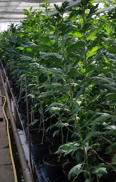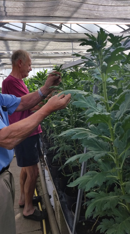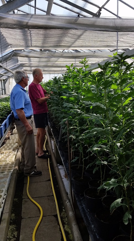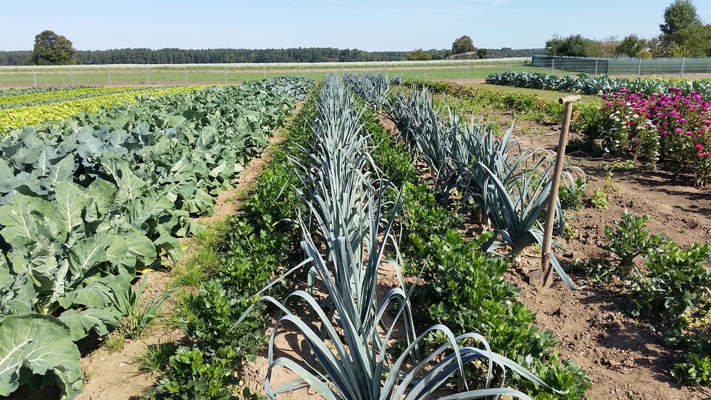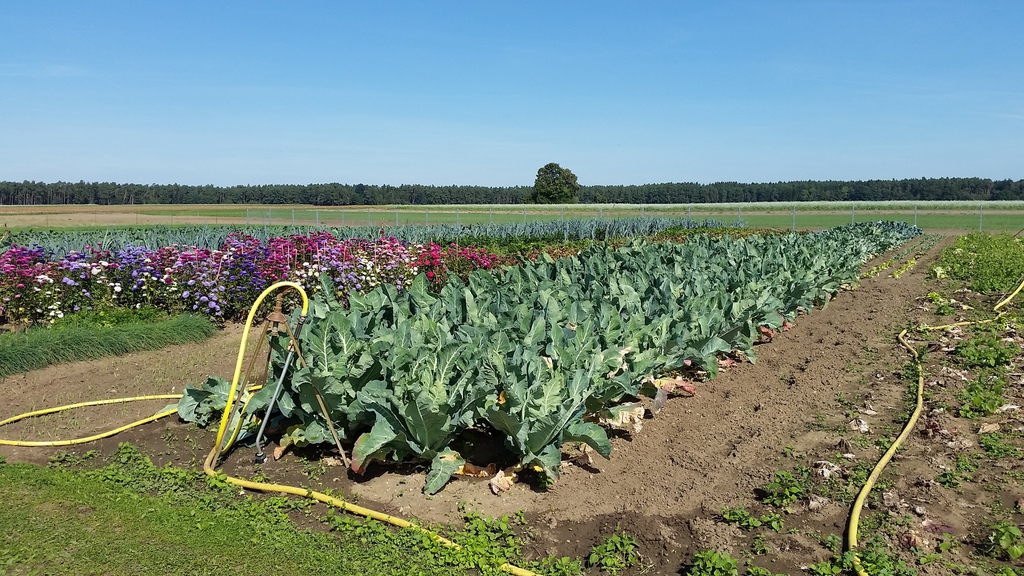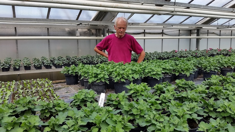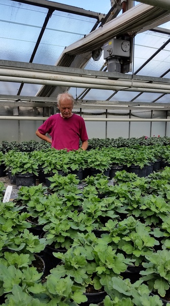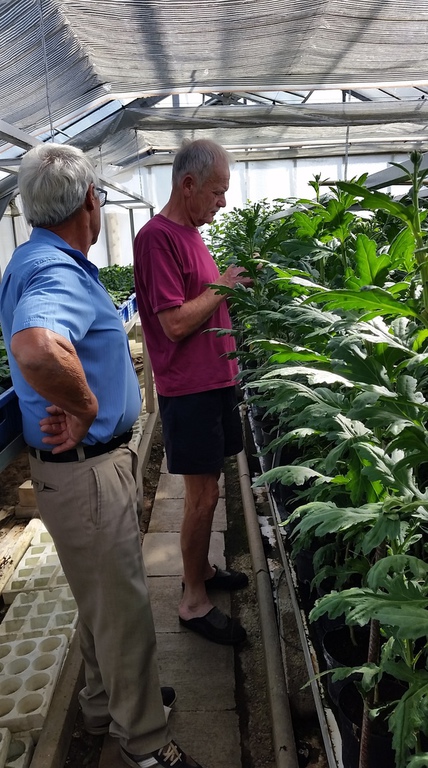 Das Gemüse steht auch gut da, das verkaufen wir dann auf dem Wochenmarkt. Die Chrysanthemen werden fachmänisch von Herrn Eber kontrolliert und die Knospen ausgebrochen, damit dann auf Alerheiligen nur eine schöne große Blüte strahlt.