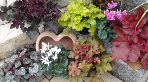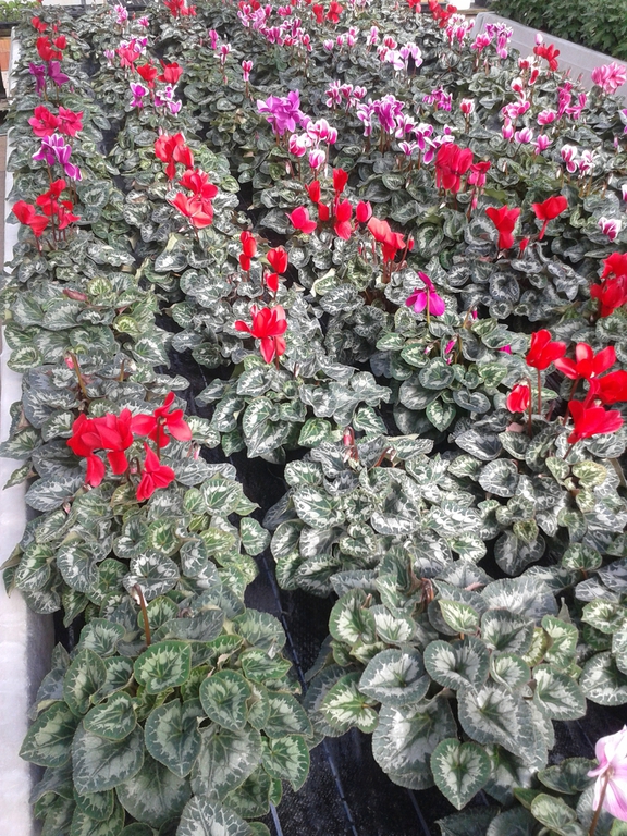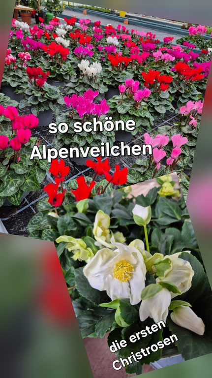Alpenveilchen (Cyclame persicum) auch persisches Alpenveilchen genannt. Die auch als Zimmer - Alpenveilchen bekannte Art, ist mittlerweile fast ganzjahrig im Handel zu finden. Alpenveilchen sind dank moderner Züchtungen auch sehr dankbare Herbstblüher und werden daher für das Freiland immer beliebter. Kein Wunder, denn ab August bringen die zuverlässigen Dauerblüher bis zum Frost immer neue Blüten hervor. Durch seine vielfältige Farbenpracht ist es ein richtiger Hingucker, und verschönert unsere Wohnungen. Mini Alpenveilchen oder auch duftende Alpenveilchen eignen sich ganz besonders für Freiland. feuchte Nächte und kühle Temperaturen überstehen die Pflanzen ohne Schaden zu nehmen. Wenn Väterchen Frost natürlich zuschlägt( ein paar Grad macht nichts) dann sind die Alpenveilchen leider kaputt.