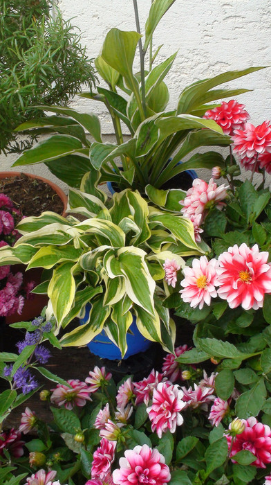 Bei den Blattschmuckpflanzen sollte die Hosta nicht fehlen. Sie ist ein perfekter Partner und bilden zusammen mit Gräser schöne Kontraste.