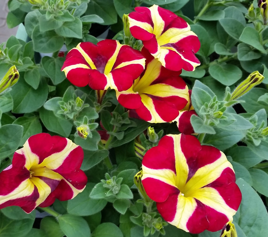Die Blütenblätter zeigen purpurrote Herzen. An dieser ausgefallenen Blüte werden Sie lange viel Freude haben. Mit ihren halbhängenden kompakten Wuchs ist diese edle Neuzüchtung einfach perfekt für Balkonkästen, Hängeampeln und dekoratieve Blumengefäße.