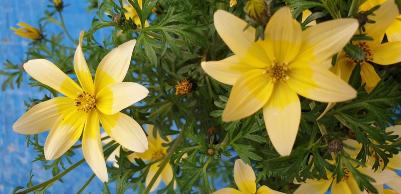 Bidens Taka Tuka ist einde edle Zierpflanze und auch eine Neuzüchtung, die wir in unserem Blumensortiment mit aufgenommen haben. Diese Neuzüchtung besonderer Art zieht alle Blicke auf sich. Taka Tuka mit ihren großen zweifarbigen Blüten und cremeweißen Spitzen ist schon ein Schmuckstück unter den Sommerblumen, und fällt sofort ins Auge. Taka Tuka verzweigt sich gut und treibt den ganzen Sommer über neue Blüten. Durch ihre leicht überhängendenTriebe ist sie ideal für Balkonkästen, Blumenampeln und Tröge. Vom April bis September blüht sie ununterbrochen. Taka Tuka ist eine pflegeleichte Beet und Balkonpflanze, sie wird ca. 40cm lang. Liebt Sonne aber auch Halbschatten macht ihr nichts aus. Wenn Sie die Pflanze einmal im Monat düngen und das Verblühte ausputzen bleibt die Farbenpracht und Blütenfülle den ganzen Sommer.