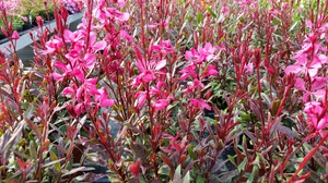 Die Sorte Gaura Gambit Compact mit fastzinierend leuchtend großen Kaminroten Blüten, an kurzen festen Blütenstielen bleibt relativ kompakt und buschig. Eine sehr reichlich blühende Sorte. Gaura Gambit Compact Pink ist noch weniger winterhart als die weiß blühende Sorte. Ein unermütlicher pflegeleichter Dauerblüher.