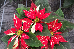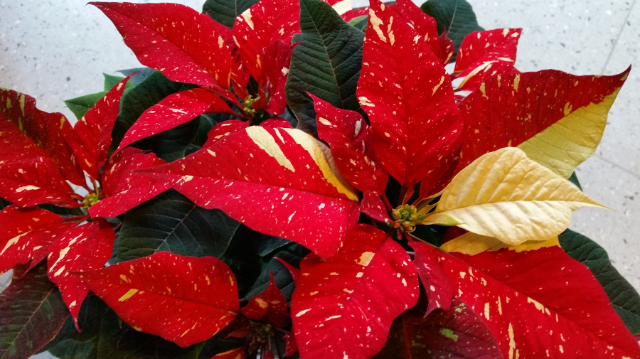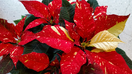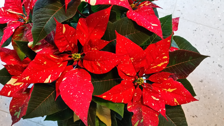 Der Weihnachtsstern (Poinsettie) ist ein absoluter Klassiker . Neben dem traditionellen roten Weihnachtstern gibt es durch Züchtungen inzwischen auch Varianten in Lachs oder Weiß. Die breite Palette bietet auch Sorten mit Strukturen auf den Blättern, die oft als Blüten angesehen werden, es sind aber gefärbte Hochblätter. Ursprünglich stammt der Weihnachtsstern aus Mexico, dort wächst er nicht als Topfpflanze, sondern ein bis zu 4 Meter hocher Strauch.